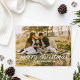 Helgdag fotohälsningskort i chic har "God jul" i ett modernt, vackert, vitt skript med rullningsdetaljer. En modern helgdag i färgad silver på gult-/grönt-bakgrunden (färg kan anpassas) gör kortets baksida intressant.