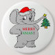 " GOD JUL " GRÅTT ELEPHANT HOLDING DECORATED JULGRAN IN THE TRUNK AND WEARARING A RED SANTA HAT