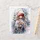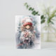 Kute, lilla vinterjulsaga som håller hennes nalle i skogen för snöskog