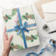 "God jul Familjeutandning Gräs Cone Farmhouse Typography stil, "Vi önskar er en God jul Personlig Namn med Holly och Rustic Barn Wood Decoupage Wrapping Papper." Vattenfärgsverk i en rustik, land chic stil för vinter- och jultider helgdagar. En mjuk vit vävare, ett skyddat skyddat dagslingematod från Gräs och en hornhinnekrans med grönt lövgrej från löv. Artist av internationellt licensierad konstnär och formgivare, Audrey Jeanne Roberts, upphovsrätt.