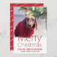 Säg God jul med ett fotokort till ditt husdjur! Det här helgdag för roligt innehåller ett favoritfoto av ditt sällskapsdjur med ett rött "God jul"-överlägg. Anpassa med foto, hälsning, familj namn och namn. Kortet återgår till ett glatt, rött och vitt "God jul" mönster.