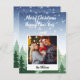 Vinterskogskort med helgdag och foto. God jul och Gott nytt år står ovanpå med familjefotot i polaroid stil vid grund på kortet. Texten och fotot kan ändras genom att klicka på "Anpassa den här mallen" och du kan enkelt ändra text och bild. Baksidan av julkortet har bara helgdag bakgrundsdesign. Det här fotokortet för familjen är utmärkt som familjemaket och som hågkomst.