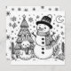 Personlig julkort med färgsidor. Färgsidor är en snögubbe och en bunny med Julgranar, måne och snöflingor på framsidan. Baksidan av vykortet innehåller ett helgdag som du kan anpassa.