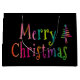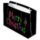 Enkel och söt design med en färgstark text med texten "God jul" och ett sött träd med en stjärna på en svart bakgrund. Dina gåvor kommer att se speciella ut den här julhelgen med de här söta och färgstarka presentpåsarna.