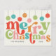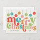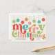 Den här designen har en färgstark, återinspirerad typeografi med en mjuk 50-tums färg-palett på en krämbakgrund. Typografin lyder "god jul" och allt färg kan ändras. Prydnadsämnena byggdes inom och är också helt och hållet anpassade. Ta bort rand, ändra färg, ändra arrangemang, anpassa det hur du vill. Glöm inte att anpassa kortet med din familj namn och året.