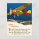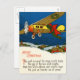 Julkortskonstruktion för spjutspaltning med dikt och flygplan som flyger över snö täckta landskap