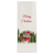 Gråväska med en söt och visuell julfest. En mysigt släpvagn som dekorerats för juluppehåll i vissa gräs träd.