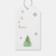Vattentärsbergscen med renar och knipa med ord "God jul" i ett typsnitt för kalligrafi av ornattypografi. Baksidan av märkrn har plats för skrivan vem presenten är till och vem den kommer ifrån.