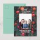 Jul anpassningsbar platt lägga till eget foto vykort med originalfotografering av en oberoende konstnär med röda juldekorationer och grönska. Lägg till din egen text för en speciell högtidshälsning. Konst copyright Ann Powell alla rättigheter reserverade.