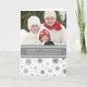 Fotokort från god jul från vår familj till er, i snyggt och modern mörk, kol grått och vitt festligt snöflingor mönster, enkelt anpassade med ditt personliga familjefoto. Önska dina vänner och din familj väl den här julhelgen med det här roligtens hälsningskort.