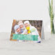 Fotokort från god jul från vår familj till din med tealturkos blå rustik vattenfärg mönster och modern handskriven stil-skrift, lätt anpassade med ditt familjefoto. Önska dina vänner och din familj väl den här julhelgen med det här roligtens hälsningskort.