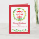 Ett anpassat julkort för en advokatbyrå med skalor som illustreras med rött vattenfärg som gränsar till en krans av löv och bär som accentueras med en rad hal och en ljus röd bakgrund. Insidan har samma röda skugga, en spiral av holly och vit text. Du kan anpassa texten efter dina behov.