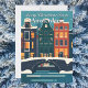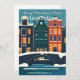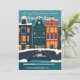 Ett charmerande, högkvalitativt julhälsningskort med en ren, geometrisk plan illustration av Amsterdamkanalerna i berömden i snö. Detta kort är perfekt för att skicka elegant European helgdag önskemål. Idealisk för nederländska kulturarvsfamiljer, resande eller någon som kärlek modernt, färglöst citymer.