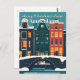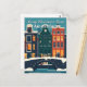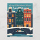 Skicka en festlig och modern hälsning med denna resepostkort i flat design. Den har de ikoniska kanalhusen och bron i Amsterdam dekorerade med julbelysning under en snöig himmel. Perfekt för att skicka unika julhälsningar och fira andan av en holländsk jul. En stilren, minimalistisk illustration för samlare och resenärer.