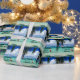 god jul från Bahamas, tropisk strandbakgrund med handflatan träd