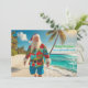 Ge era julhelger soliga vibes med den här roligten och julkortet! Med ett glatt Jultomten som går på en tropisk strand i en pulserande hawaiisk skjorta och ljusblå kort, är detta platta kort perfekt för familjer som kärlek kusten, varma destinationer eller bistra helgdagar. På framsidan står "God jul" i grönt med din familj namn i blått - båda helt anpassade. Baksidan innehåller ett glatt meddelande i grönt: "Må dina helgdagar vara trevliga och klara!" en bit av paradiset denna jul med ett kort som är lika unikt och roligt som din familj. Underbar för helgdagskorten, kustboende eller någon som drömmer om en varm jul!