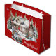 God jul från Cabin Helgdag Large Gift Bag. Från vintern på kabinsamlingen. Logga in med hjort och håll utkik. Betlehems stjärna skiner väldigt bra. En vintage lastbil är lastad med gåvor och dekorationer för speciella dag. Kabinen är upplyst för gäster. Varm och mysigt. En stor presentväska är perfekt för julklappar och matgåvor till helgdag! god jul!