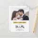 Glad jul från framtiden Mr och Mrs fotokort är perfekt att skicka ut julhälsningar som ett nyligen förlovat par. Designen har vacker handskriven borstfont typografi med ett falskt guld folieband banner under orden "Glad jul". På framsidan har designen också plats för ett foto i liggande orientering. På baksidan av kortet har designen plats för hälsningar. Anpassa designen genom att ersätta provfotot och texten. Kontakta designern om du har några önskemål om designanpassning.