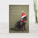 Denna söta katt som tittar på kameran medan han visar upp sin tomtehatt och matchande halsband på en grön bakgrund är ett bra sätt att önsk någon en God Jul från katten med en liten stänk av humor!