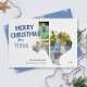 Du är stolt över att vara Texan, så skicka ut lite ljushjärtad statlig stolthet den här julhelgen med det här tre fotokortet lycklig helgdag med texturerad text i mörk och ljusblå och accentuerad med snöflingor. Anpassa med ditt eget meddelande om glädje, plats, år, din familjs namn-text och tre av dina favoritfoton. Om du vill justera dina foton så att de placeras bättre i Texas-formen, användor du länken "anpassa ytterligare" och markerar fotot i lagrar och användan i Skörd verktyg för att skörd bilder ska passa. Du kan ändra typsnitt, färg och till och med lägga till fler bilder eller text på baksidan och rensa den mönstrade baksidan för en solid bakgrund.
