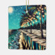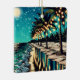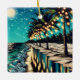 Söt romantisk Ai-konst vid kusten som skildrar en rad av handflatan träd med belyst vitt ljus på dem. En söt reflektion över sandstranden och vågar.