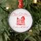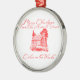 God jul från vårt hem till Yours med en bild i en hytt och ett kabin i Skogen skapat till ett prydnadsföremål.