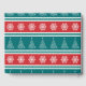 God jul illustration med Julgran och snöflingor dekoration på röd, vit, blå och turkospassad bakgrund