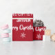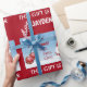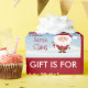 Julen i elegant och i gryningen, papper för barn med tomten i sin röda dräkt (med candy cane) och hans favoritrenare, Rudolph, bakom sig. Texten lyder: "God jul! Den här presenten är till Jayden från Jultomten" - se till att du personifierar barn namn. Du kan också byta hälsning om du vill. Presentfigurationen innehåller också två röda bubblor med snöflingor och ett snöslandskap. På Julafton röd bakgrund.