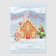 God jul Gingerbröd House Magnet-julkortet Snowy Background, Julgran, Gingerbröd House och ett sött litet redo i Dam att välkomna er att ha ett God jul.