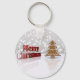 God julbild och elegant med dekorerat gingerbröd träd och rött metalliskt 3D hälsning på en lätt glamorös bakgrund.