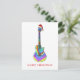 Glad jul Psykedelisk Elgitarr som bär en festlig tomtehatt Julhälsningskort. Semi-akustisk elgitarr prydd med rolig psykedelisk, levande ljusa färger som bär en rolig tomtehatt. Varje gitarrist eller musiker kommer att berätta för dig att man aldrig kan ha för många gitarrer. Detta roliga färgglada gitarrkort med festliga hälsningar, perfekt för en tonårspojke, firar energin och variationen hos detta underbara musikinstrument. Det perfekta anpassningsbara julhälsningskortet för gitarrister, musiker och musiket fans. Psykedelisk gitarr popkonst av konstnären Catherine Sweetman