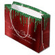 Den här presentpåsen av glam helgdag har en glatt grönt faux glitter drop gräns och röd faux borstad metall bakgrund. Ord "God jul" visas i handskriftsskript för vit avslappnad (eller ersätt med ett hälsning som du väljer). Anpassa den med familjens namn eller annan text nedan i sans serif-teckensnitt.