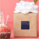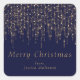 En julklistermärke med guld, gnistrande droppljus. Designen är elegant i mörkblått och guld. Klistermärket kan personifieras med ett namn. Klistermärket kan användas som en del av ditt julpresentpapper eller som kuvertförsegling under den festliga perioden.