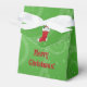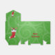 Denna tjänst- eller presentlåda har en festlig grönt snurra mönster med en gnom med ett vitt skägg i en röd och vit julklapp med kluster av grönt holly löv och polkagrisar med texten God jul i rött.