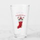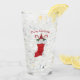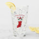 Denna glastumör för drycker har en gnom med vitt skägg och röd hatt överst på ett rött och vitt skal med polkagrisar och kluster av grönt holly löv. Anpassa God jul-texten med mallarna.