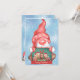 God jul Gnome Photo Personlig julkort. Den här designen är en roligt vattenfärg Scandinavian Gnome med en röd julhatt, som håller ett foto av dig och din familj med en "God jul" hälsning på en blå och vit snöflingerbakgrund. Du kan ändra texten på baksidan och namnteckning linjer genom att klicka på Anpassa ovan.