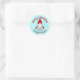 Den här roligten och det festliga klistermärket illustrerar en gnom med en röd hatt och handskar, omgiven av snöflingor med ord God jul från gnome till din.