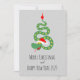 Lustigt kort för kommande vinterjulhelg. Det är två i ett! Du kan skicka det här kortet till dina vänner och närstående för att önska dem God jul och Gott nytt år samtidigt. Den har en tecknad som illustrerar ormen med Santa Hat i Julgran. Varför Snake? År 2025 kommer nämligen att bli året för ormen i kinesiska Lunar Zodiac Cycle. Tveka inte att kontakta mig via Zazzle om du behöver hjälp med att anpassa texten på kortet.