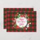 2025 Julkort - Jul och Gott Nytt År 20XX! JUL-kort dekorerat med magiska jul symboler, vinterfirande present element mönster, snöman, julgran, julklot, renar, snöflingor, julstjärnor och fler festliga figurer på julrutiga fyrkanter ornament, Skottland mönster (grön & röd färg). Originell trendig grafisk design. Inbjudningar & brevpapper > Julkort. Presenter Vinterfirande dekoration. Monogram Julkort design med text mall. Personifiera dem genom att lägga till namn. Tvåsidig grafisk dekoration.