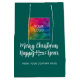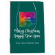 Anpassad Text God Jul Gott Nytt År Kalligrafisk Skrift Familjenamn Lägg Till Din Företagets Logotyp Eller Bild Foto Här Elegant Modern Kampanjmall Tall Träd Grön & Vit Blank Medium Presentpåse.