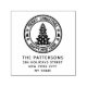 Returadress för självbläddring i God jul Gott nytt år Returadress med Namn Inking Frimärke innehåller texten "God jul Gott nytt år" accentuerad med Julgranar och snöflingor ditt eget namn och returadress i modern skrift. Perfekt för julkort, helgdagskort, inbjudningar och julfester till julfester eller på kontoret för varor eller post. Designad av ©Evco Studio www.zazzle.com/store/evcostudio