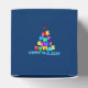 Julgran och snö består av den färgstarka och dekorativa texten God jul Gott nytt år. Julafton-presenter, utskrifter och t-shirts för roligt och bra. Blå bakgrund