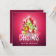 Partiet inbjuder till en coola julillustration. I texten står det God jul & Gott nytt år. Designad med en träd-formad mound av presenter med festive snöflingor, stjärnor, jultomter och glatt tittar gnistor. Bakgrunden är en pulserande rödaktig rosa färg.