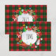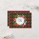 Julkort med monogram (personligt) - God jul och gott nytt år! JUlKORT dekorerat med magiska jul symboler, vinterpresenter element mönster, snöman, julgran, julkulor, renar, snöflingor, julstjärnor och fler festliga figurer på jul rutor ornament, Skottland mönster (grön och röd färg). Originell trendig grafisk design. Inbjudningar & brevpapper > Julkort . Presenterar vinterdekor. Julkort design med text mall. Personliga dem genom att lägga till namn. Grafisk dekoration på båda sidor.