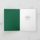 Önska din tassar-vänliga speciella mordotter i God jul med den här söta Bernedoodle-hund som bär en julhatt och bugar på en grönt bakgrund med gyllene stjärnor och cirklar överallt.