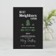 Visa kärlek för dina grannar och skicka det här God jul-grannkortet för Helgdag. Det är trendigets moderna designad med svart bakgrund på framsidan och svart och vitt rand på baksidan. En uppsättning med tre eleganter grönt gräs träd skapades från ett personligt konstverk teckning. Texten "bästa grannar någonsin" står i vitt ovanför träd. Personlig med grannens första namn på mitten. Anpassad med år och namnteckning från namn till det nedre området. Ett enkelt hälsning och "God jul" ligger i nedre delen av området. KLICKA PÅ ALTERNATIVET ANPASSAD MALL OCH FÖLJA PROMPTS.