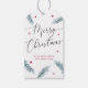 Modern märkre för julskörd med illustration av löv och röda bär från gräs träd. Det står "God jul" i elegantens text längst upp.