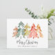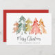 Ett enkelt kort för helgdag och elegant med en abstrakt för vattenfärgen gräs träd i den nedsänkta sage-grönten, rött, guld och orange och "God jul" i ett snyggt-skript. Lägg till en personlig säsong hälsning och namn i ett namnteckning skript på baksidan.