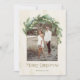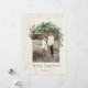 Den här helgdag-kortsdesignen har en unik båge ram för ditt foto med helgdag evergreens, eucalyptus greenergiy och snörvd ljus som ska accentuera bild. Innehåller brons färgad "God jul" med en text som kan anpassas och en neutralt bakgrund av elfenben och krämfärgad färgad i stil.