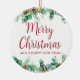 Julkeramiska prydnadsföremål har en vacker vinter-bladbild med "God jul" i ett vackert skript. Den här minimala, enkla och elegant designen ser fantastisk ut att hänga på träd eller var du än vill ställe den. Bläddra i Helgdag Juli för fler objekt.